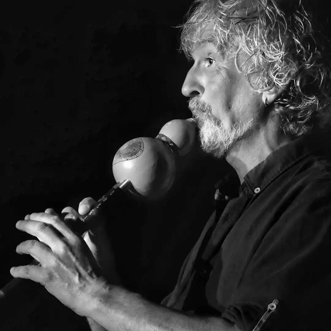 Porté par l’appel des horizons lointains, ALAIN LARRIBET voyage à la rencontre des traditions musicales du monde et crée un langage sonore personnel : sa voix -empreinte des couleurs des chants du monde nous transporte au-delà les cimes – se mêlant aux instruments rares (duduk, hulusi, hang…) et au souffle de la nature.